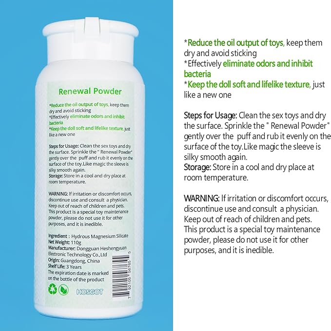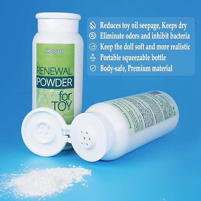 Specially designed renewal powder for sex dolls, created for convenient use to restore and maintain the unique, soft, lifelike texture of the doll.